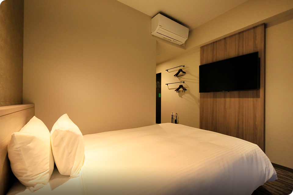 ゆったりとした空間にダブルベッドを配し、心ゆくまで滞在をお愉しみいただける空間をご用意いたしました。